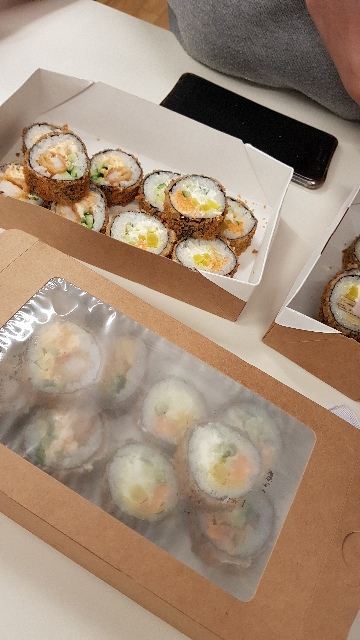 - "Манхеттен": филе лосося, сливочный сыр, авокадо, огурец, кунжут - 8 шт.