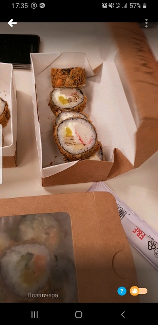 - "Бостон": креветка, сливочный сыр, ананас, салат Айсберг, соус сладко-ореховый, икра Тобико красная. Острое - 8 шт.