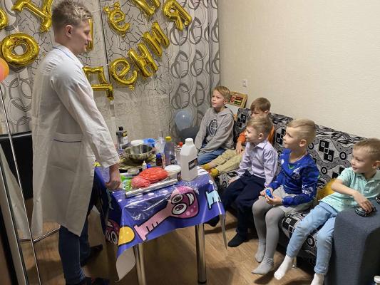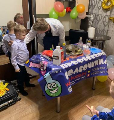 В сумасшедшую лабораторию Профессора Колбочкина требуются помощники для проведения самых невероятных и захватывающих опытов: ребятам предстоит научиться замораживать всё что угодно, проводить эксперименты с жидким азотом и самостоятельно созданным снегом, а в конце будет проведен мастер-класс по изготовления настоящего мороженого и угощение им всех детей!