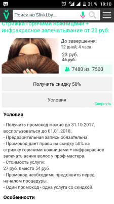 - Промокод дает право на скидку 50% на стрижку обычными/горячими ножницами + инфракрасное запечатывание волос у мастеров Аллы и Арины