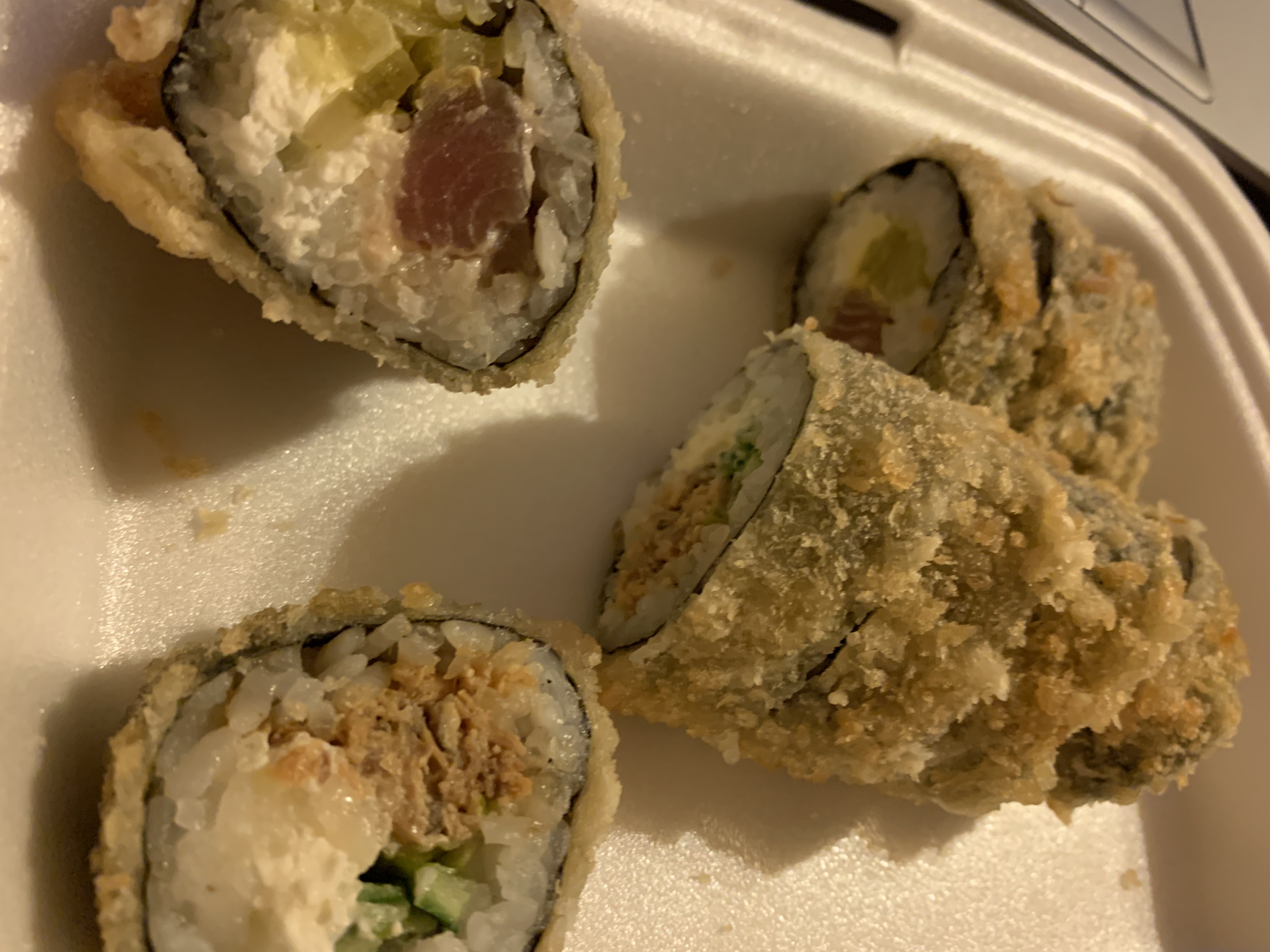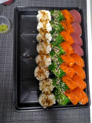 Добрый вечер. Роллы очень вкусные! Еще не успели открыть, как уже чувствовали вкусный запах, вид 100 баллов. За последнее время  лучшие из доставок что были, включая супер быструю доставку. Спасибо вам за это. Единственный минус в нескольких  роллах попадался суховатые крупинки риса.