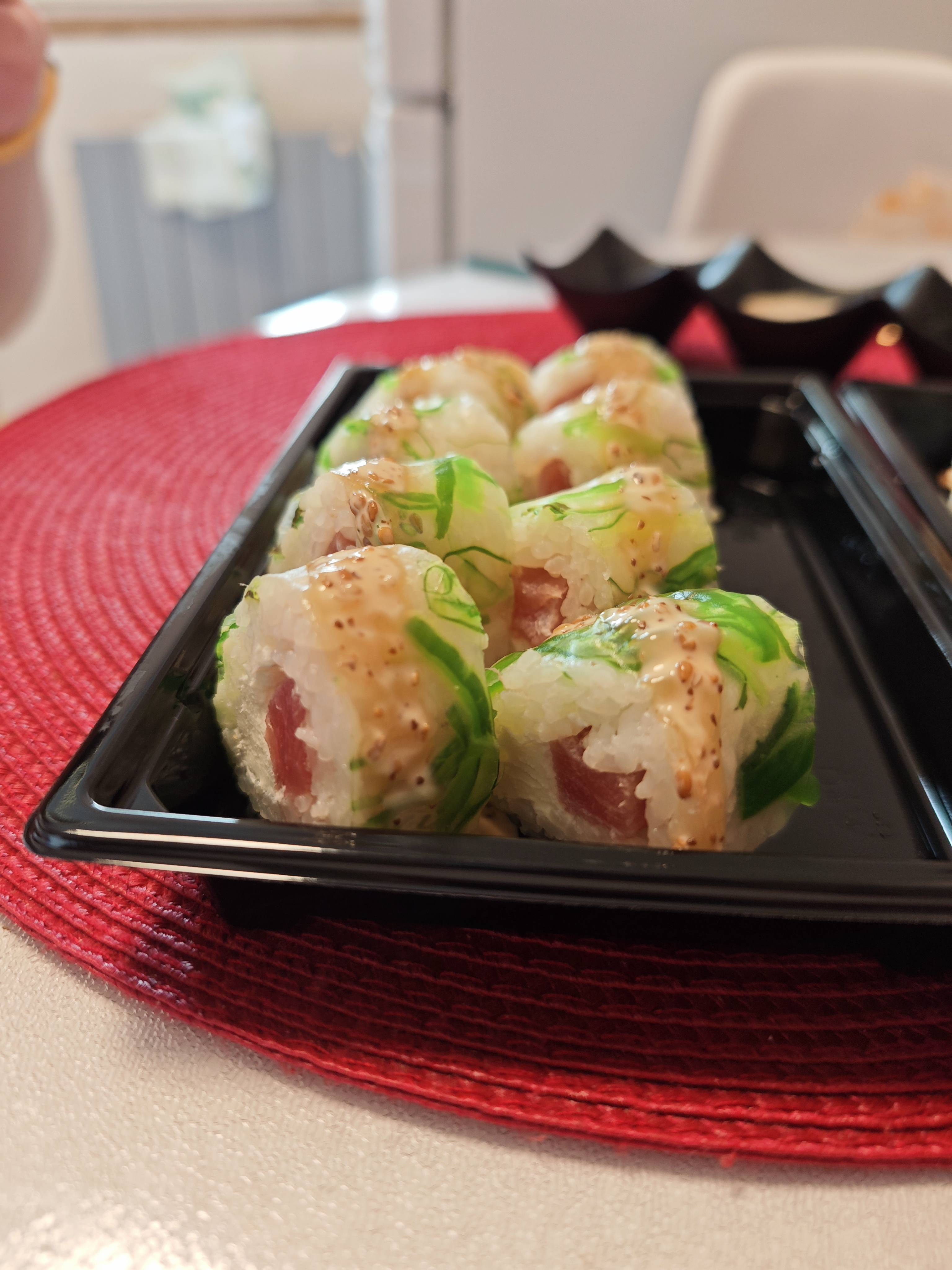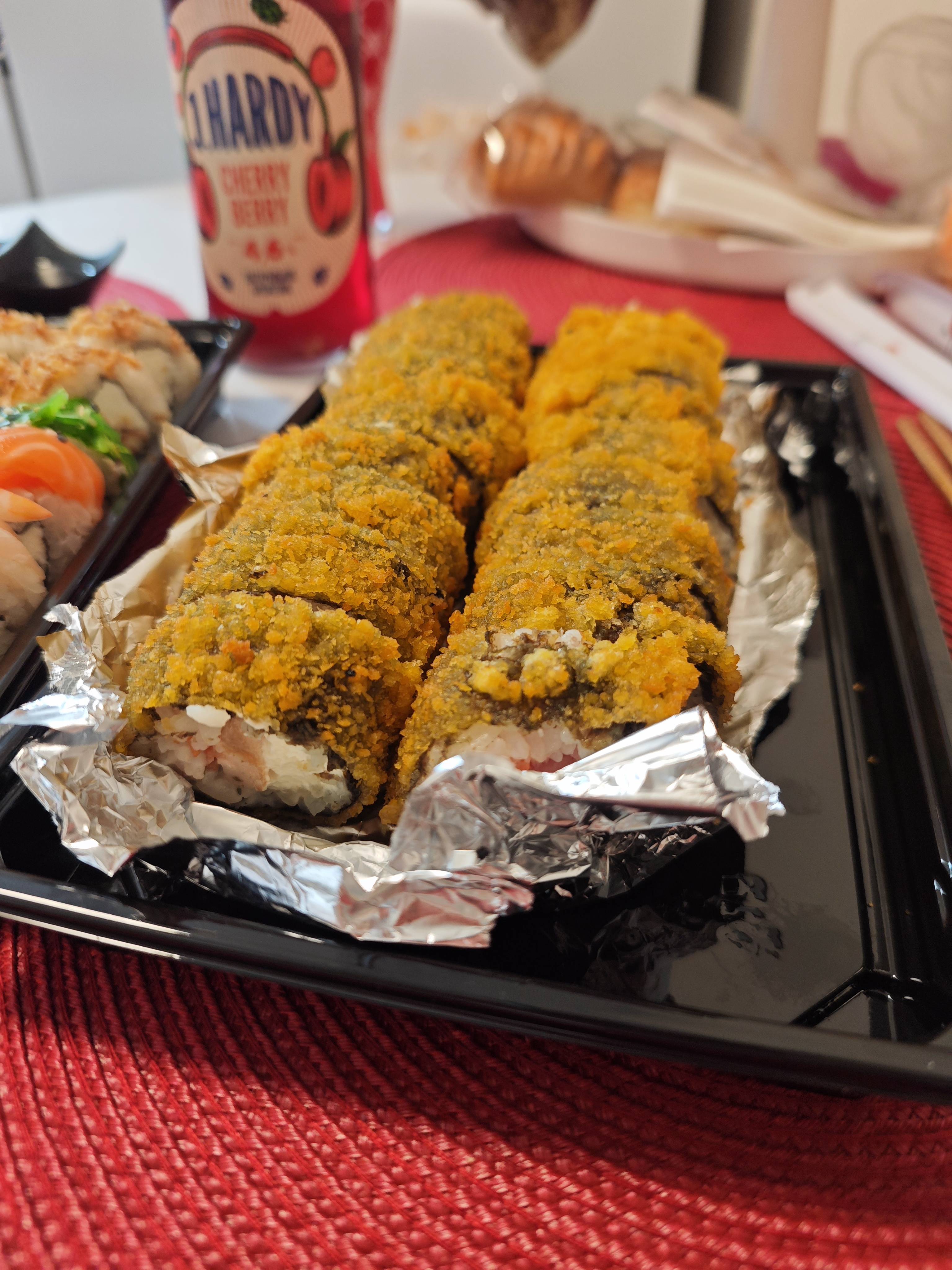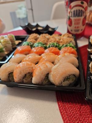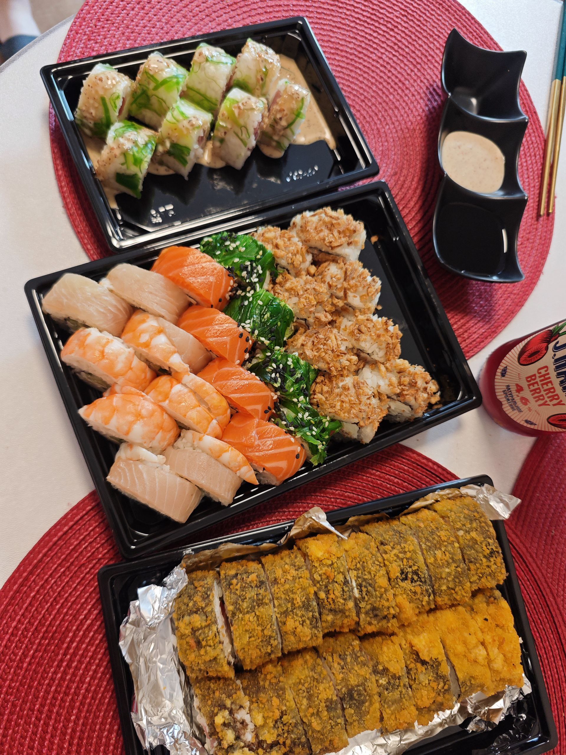 Одни из лучших суши, что мы пробовали. Заказывали сет "Выбор большой компании": роллы вкусные, не сухие, начинки много. Роллы большие и в рот могут не помещаться. Даже горячие роллы были вкусные, что редкость для них. Однозначно рекомендую.