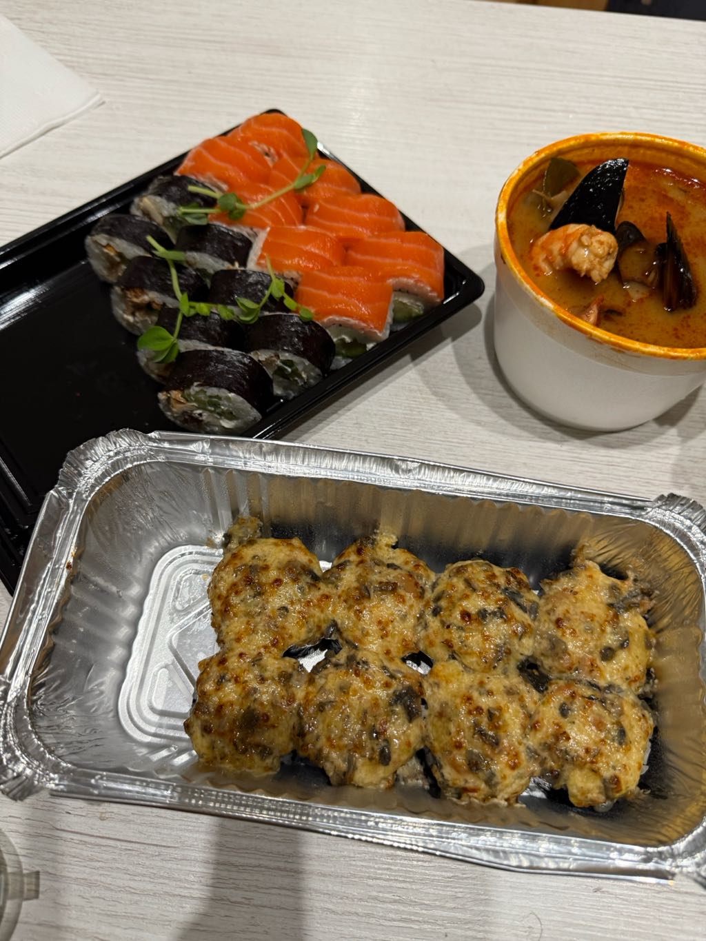 Сегодня заказали том ям и роллы )