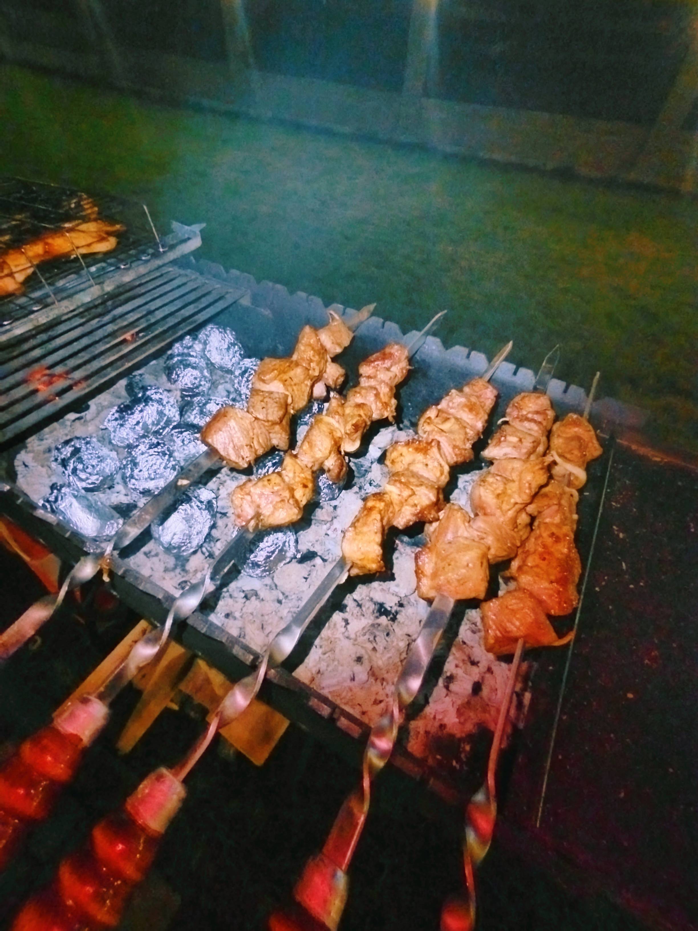 Здесь хочется сидеть часами: мягкие пледы, мебель из дерева ручной работы, которая словно хранит тепло рук мастера, красивый брендированный мангал с эмблемой нашей усадьбы - настоящий символ домашнего тепла.
