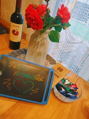 - В стоимость входит: wi-fi, два телевизора Smart TV, оборудованная кухня, музыкальная колонка, уютная терраса с деревянной мебелью, мангал, батут, дартс, велосипеды, настольные игры