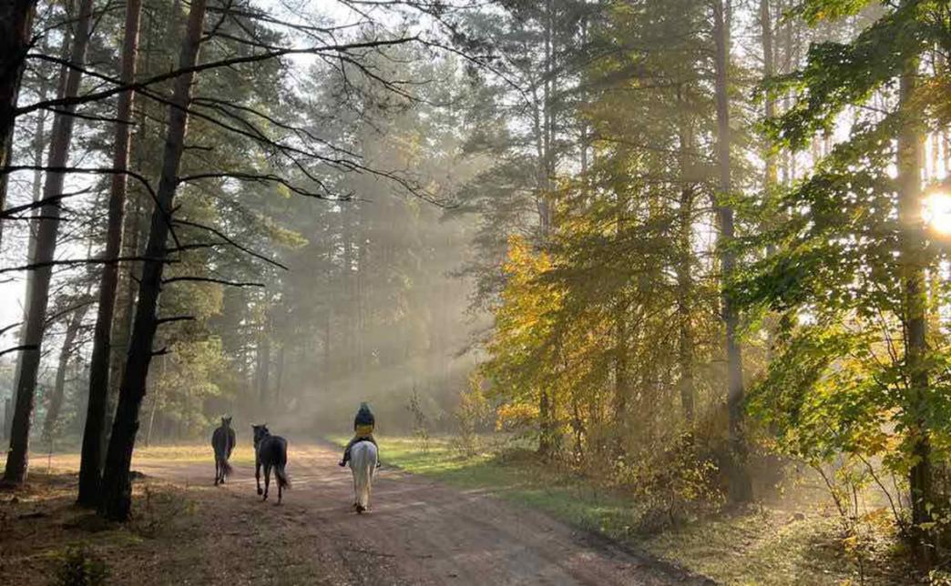 Возвращение к конюшне пройдет через лес, луг и поляну, где вы сможете наблюдать за природой, жизнью диких птиц и животных, наслаждаясь видами и свежим воздухом.